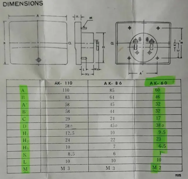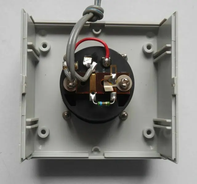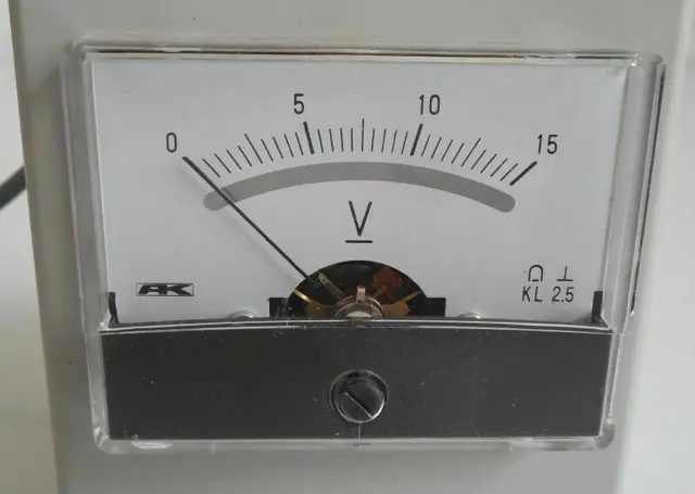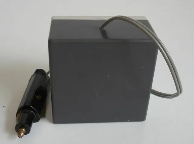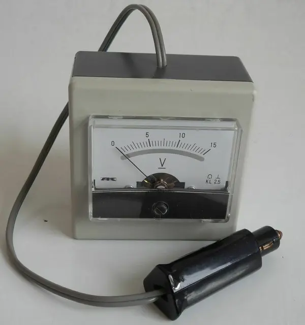 Einbau-Instrument mit Skalenbeleuchtung 12V=, ca. B60xH46mm, Einbautiefe 32mm, Tubus 38mm, in PVC-Gehäuse ca. B75xH75xT40mm mit Stecker, 8€,