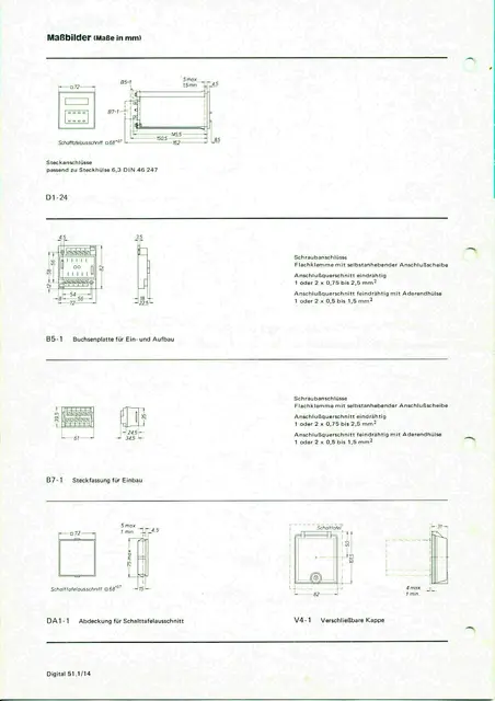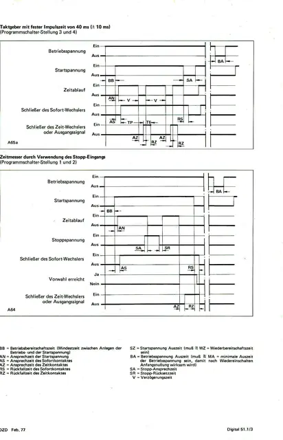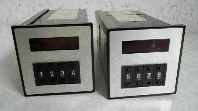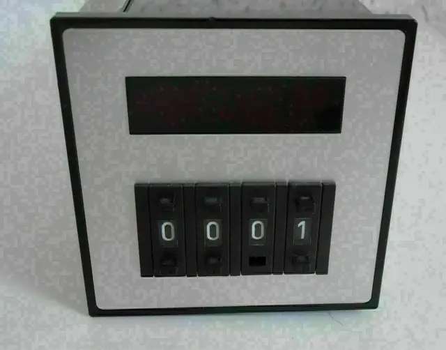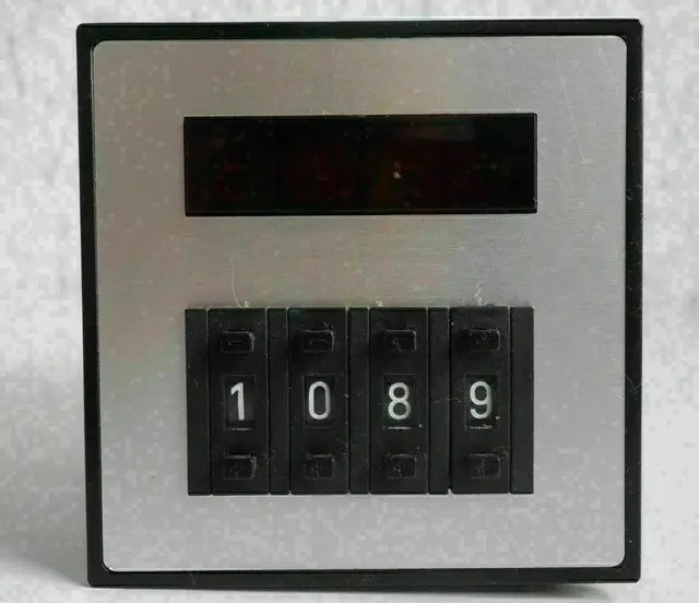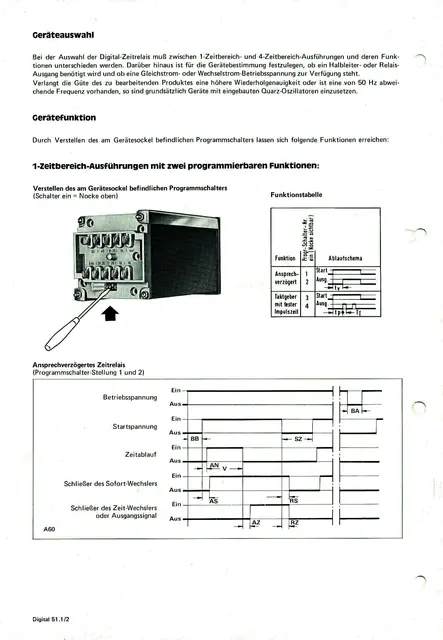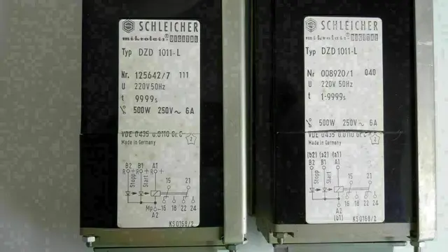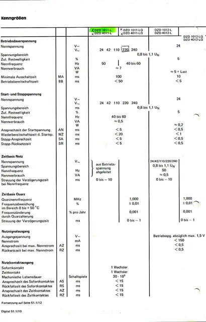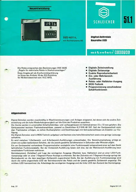 2Stück Präzise Digital-Zeit-Relais Schleicher mikrolais DIGITAL Typ DZD 1011-L, 220V 50Hz, mit großem digital einstellbaren Zeitbereich mittels vier frontseitigen Codierschaltern von 1 bis 9999 Minuten oder durch Widerstandsänderung im Gerät nach vorhandener Hersteller-Anleitung leicht umrüstbar auf 1 bis 9999 Sekunden, 7-Segment-Anzeige der Zeit, Programmierung verschiedener Schaltfunktionen durch Umschalter am Gerätesockel, Relais-Kontakt 500W 250V 6A, Anschluss mittels beiliegender Steckfassung mit Schraubanschlüssen oder Flachstecker direkt am Zeitrelais, Einbaulage beliebig, Schalttafelausschnitt 68x68mm, ausführliche Bedienungs- und Schaltanleitung vorhanden.