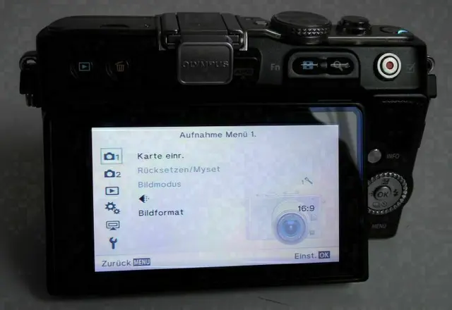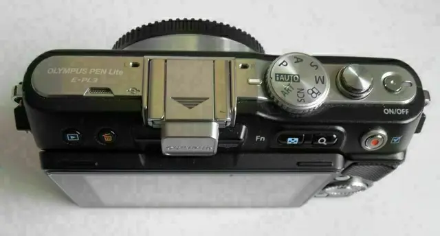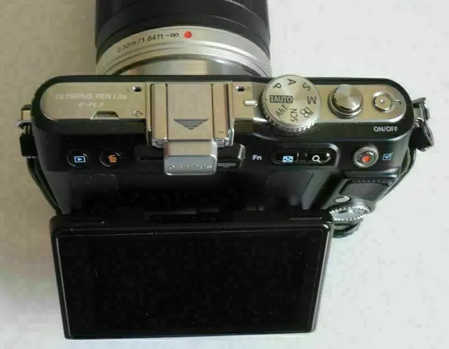 Olympus Metall-Gehäuse Pen Lite E-PL3 schwarz, schwenkbares 3“-LCD-Display, Autofocus, belegbare Schnellzugriffstasten, Zubehöranschluss, usw.